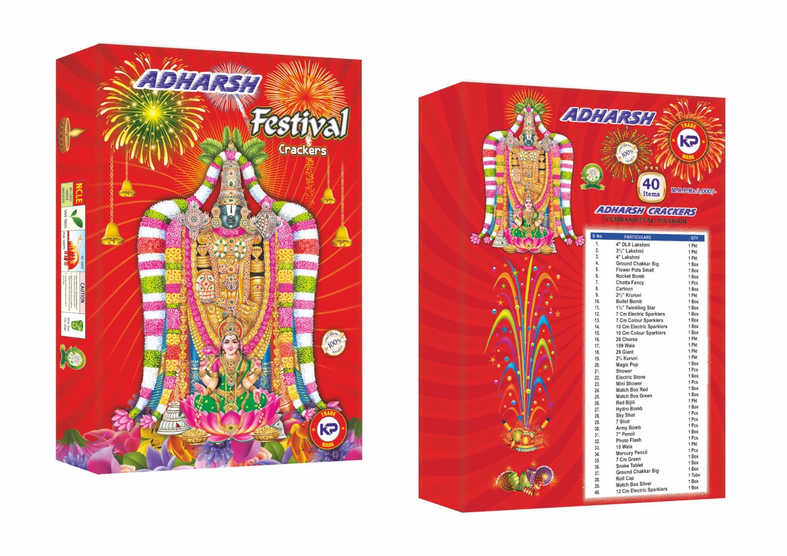 | 4 Inch Lakshmi Deluxe & Parrot | 1 Pkt | ₹60.00 | ₹24.00 | ₹ 0.00 | ||
